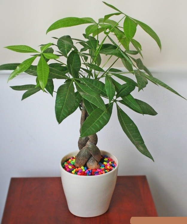 Cây kim ngân để bàn người Tây phương gọi là Money tree, được xem là rất tốt về phong thủy, mang đến cho gia chủ sự may mắn và thịnh vượng. Kim ngân có tên khoa học là Pachia aquatica, xuất xứ từ Mexico, Brazill Nam Mỹ và đầm lầy Trung Mỹ. Kim ngân cũng được chọn làm nguyên liệu bonsai bởi ta dễ dàng nuôi được gốc lớn từ hạt dễ dàng tạo dáng, khống chế được chiều cao cây và độ lớn của lá.